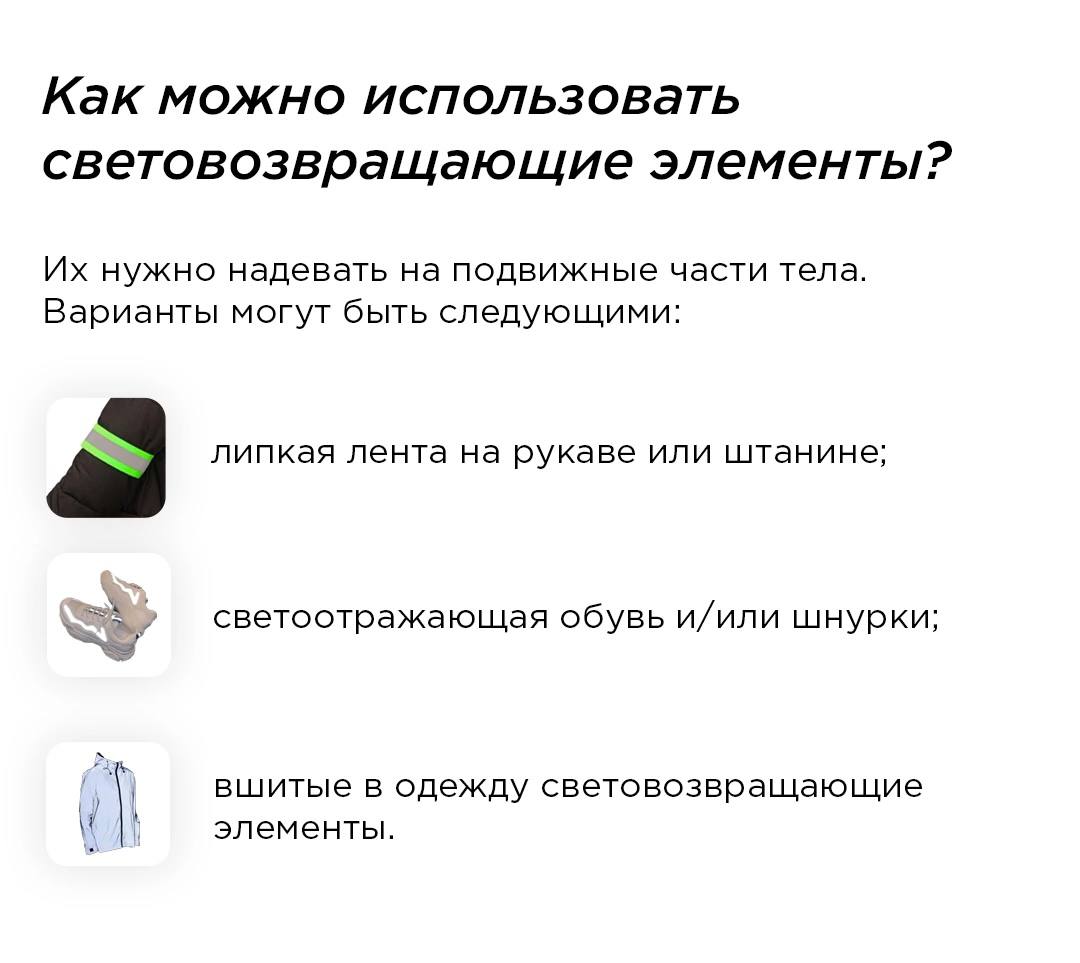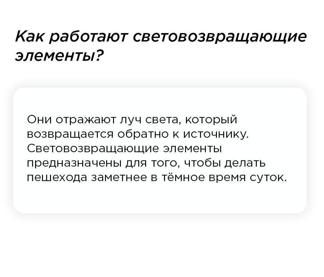 Больше о светоотражающих элементах можно узнать из наших карточек.