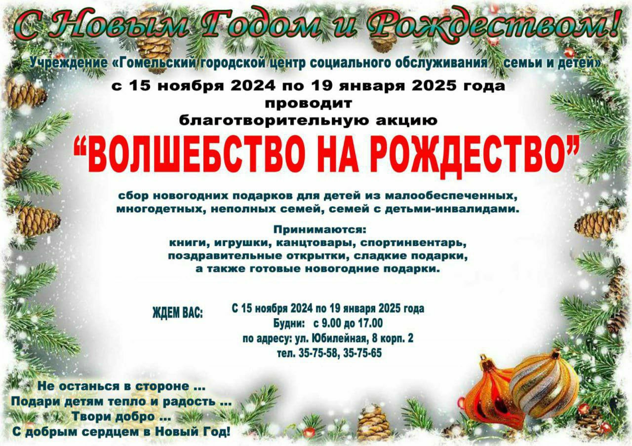 🎄🎁🎄В Гомеле проходит городская благотворительная акция «ВОЛШЕБСТВО НА РОЖДЕСТВО» для детей из малообеспеченных, многодетных, неполных семей, а также семей, где воспитываются дети-инвалиды.