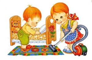 Вариантов много, можно устроить соревнование: кто быстрее соберет игрушки, кто чище вымоет тарелку и т.д. Можно приобщать к выполнению работы игрушки: мама с зайцем моет посуду, а дочка с мишкой протирают пыль. Еще вариант – придумать небольшую сказку о выполняемом поручении. Возможно, вы придумаете свою игру. Самое главное, чтобы ребенку было интересно.