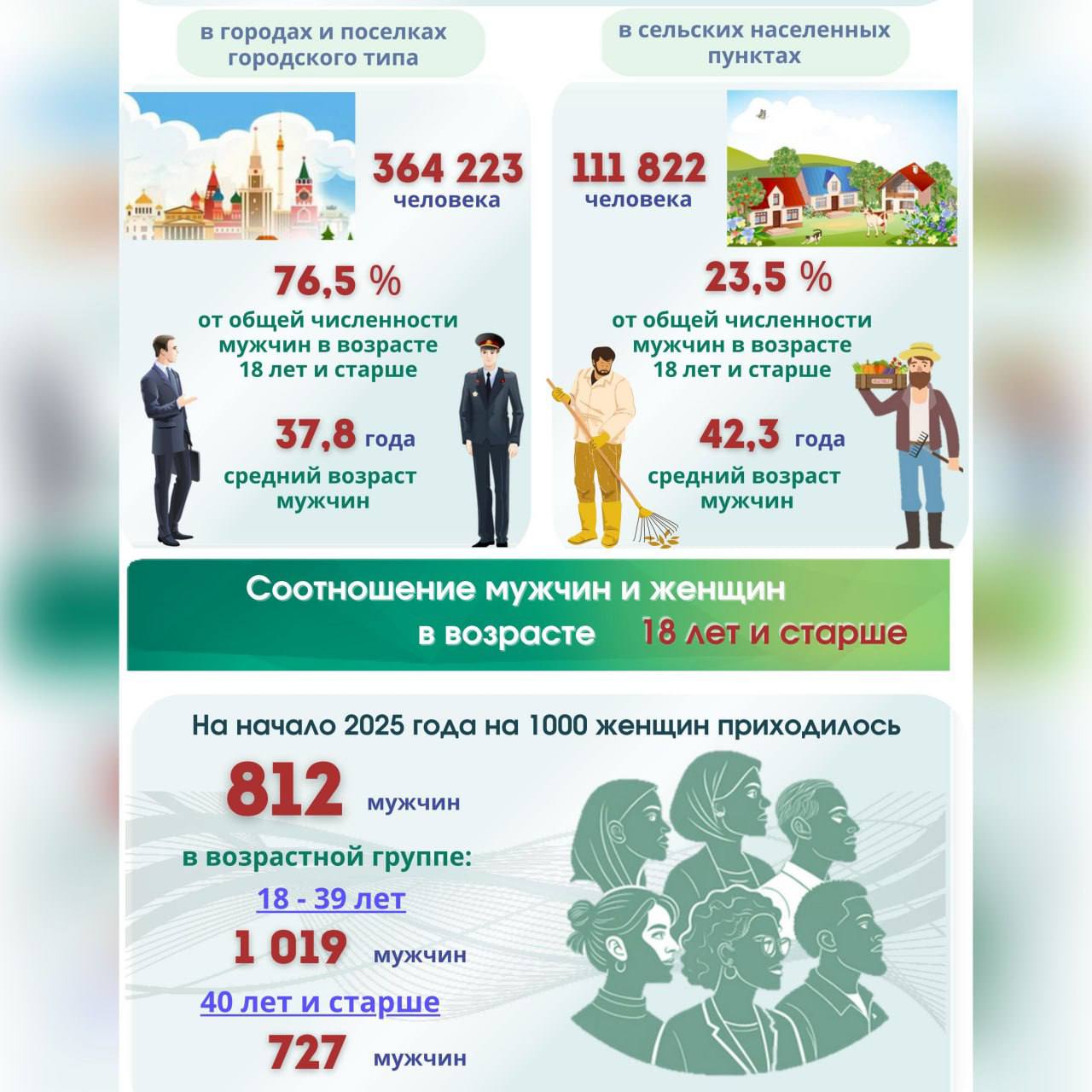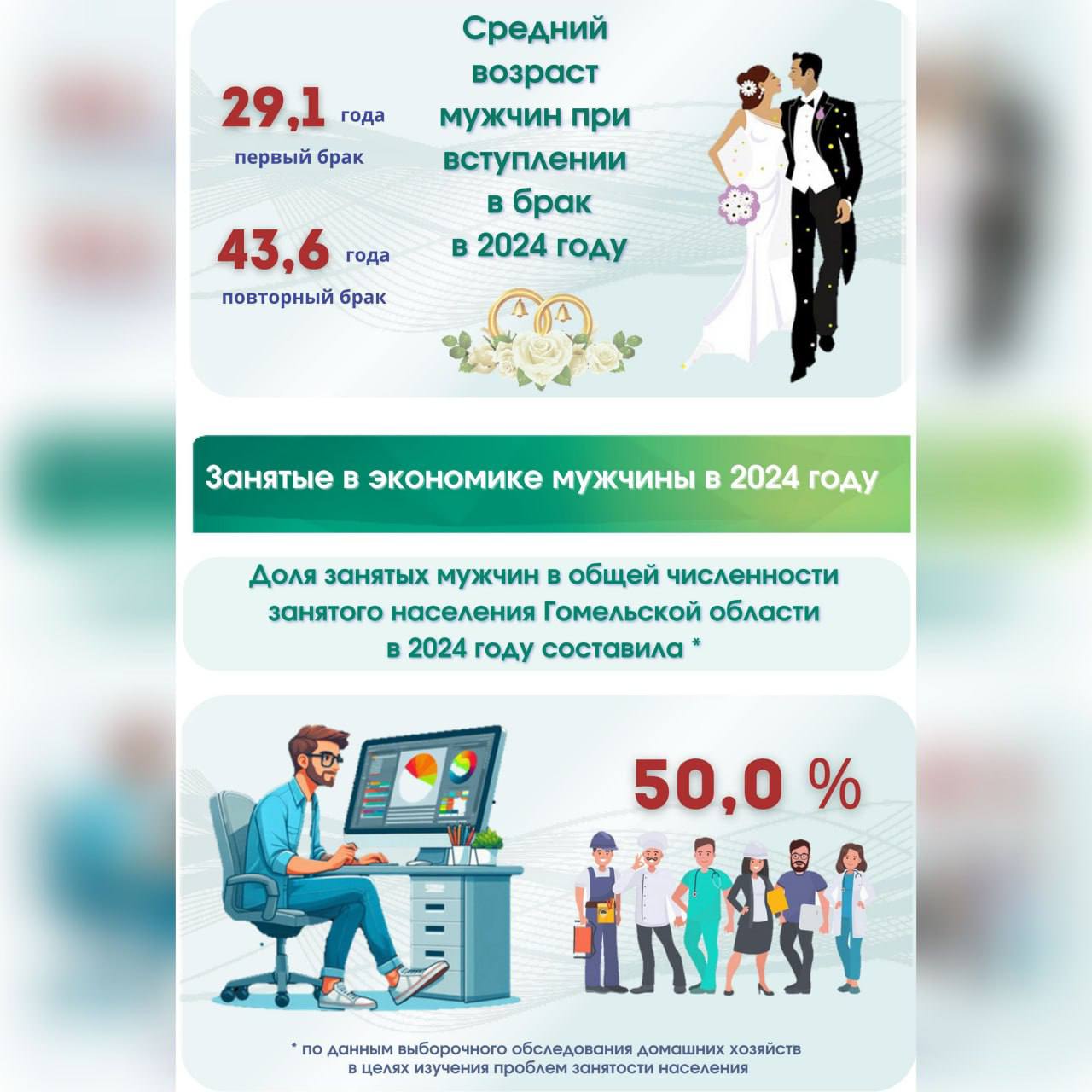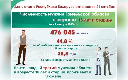 На Гомельщине проживает более 470 тысяч мужчин в возрасте 18 лет и старше, 76,5% – в городах и поселках городского типа.