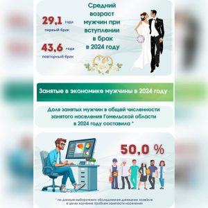 На тысячу женщин в области приходится 812 мужчин. Средний возраст представителей сильного пола на Гомельщине – 38,8 года.