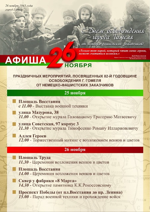 🌟 На площади Восстания пройдет церемония возложения венков и цветов;