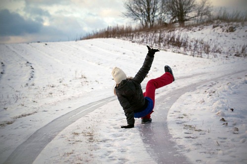 ✅Смотрите себе под ноги, старайтесь обходить опасные места. Если ледяную «лужу» обойти невозможно, то передвигайтесь по ней, как лыжник, небольшими скользящими шажками.