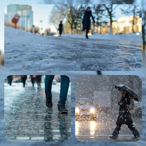 ✅Смотрите себе под ноги, старайтесь обходить опасные места. Если ледяную «лужу» обойти невозможно, то передвигайтесь по ней, как лыжник, небольшими скользящими шажками.
