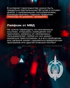 Важно всегда помнить: те, кто находятся от нас по ту сторону экрана, не всегда преследуют безобидные цели. МВД предупреждает: особая осторожность — в чатах онлайн-игр и мессенджеров!